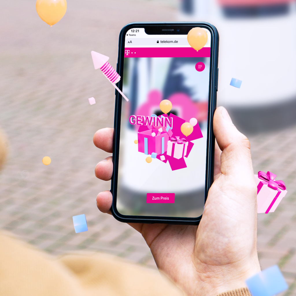 Im Rahmen einer POS-Marketingkampagne für die Telekom wurden wir von der Agentur DO IT! für die technische Konzeption und Entwicklung einer interaktiven AR-”Schnitzeljagd” angefragt. Die mobile Webanwendung bietet den Passant:innen die Möglichkeit spielerisch und niedrigschwellig an einem Gewinnspiel teilzunehmen und sich ihren Gewinn gleich im nächstgelegenen Telekom Shop abzuholen.